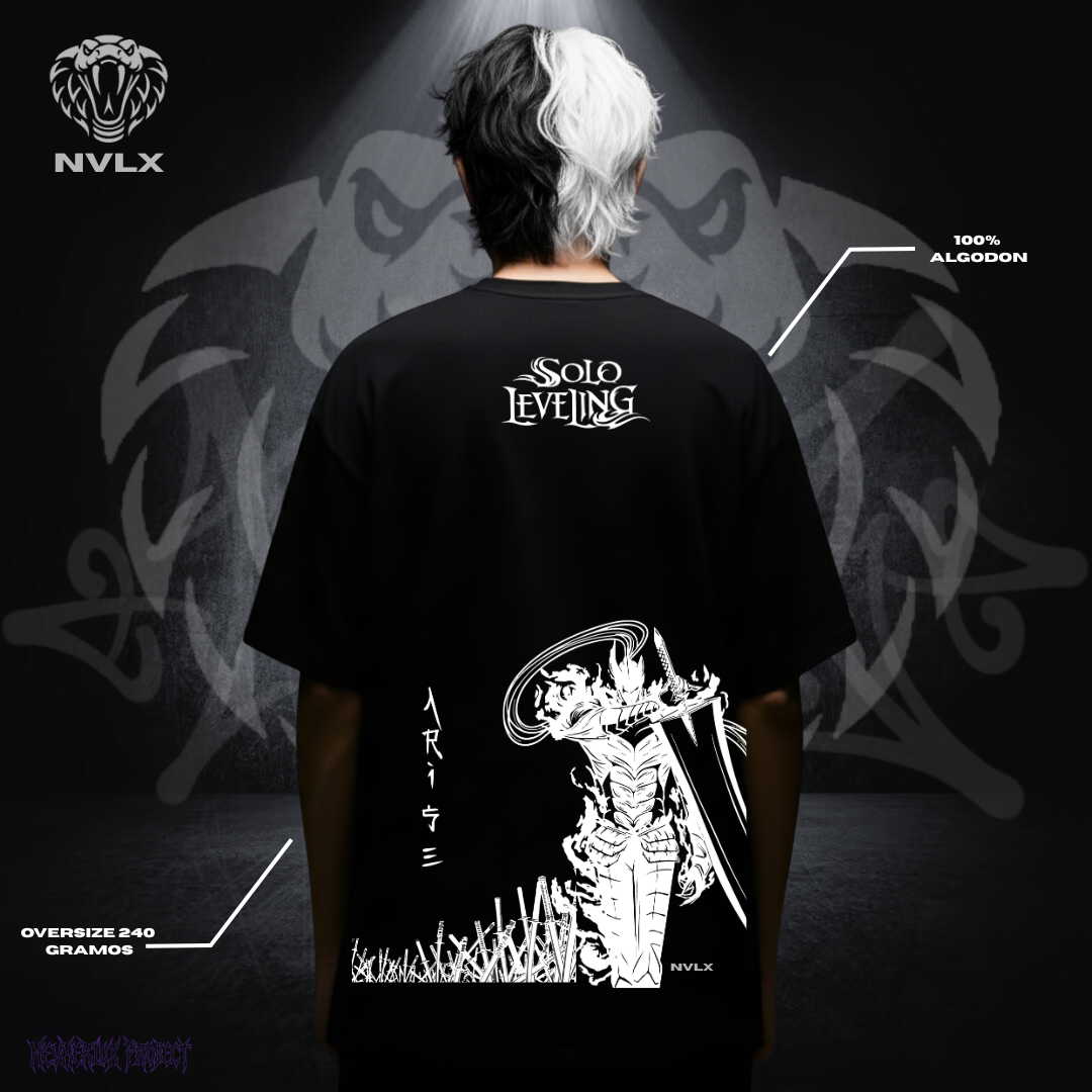 Corte oversize/Recto, estética imponente y arte inspirado en el anime oscuro.