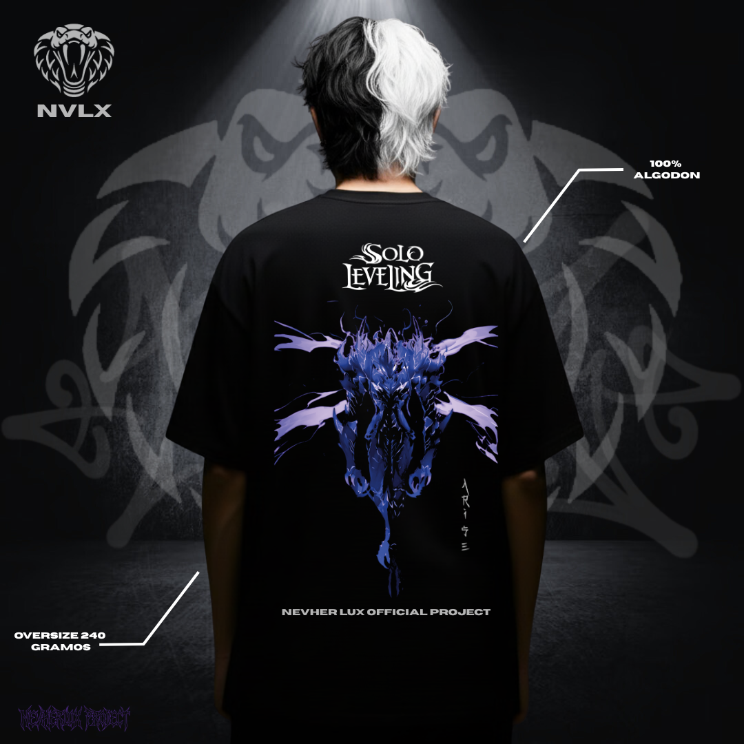 Corte oversize/Recto, estética imponente y arte inspirado en el anime oscuro.